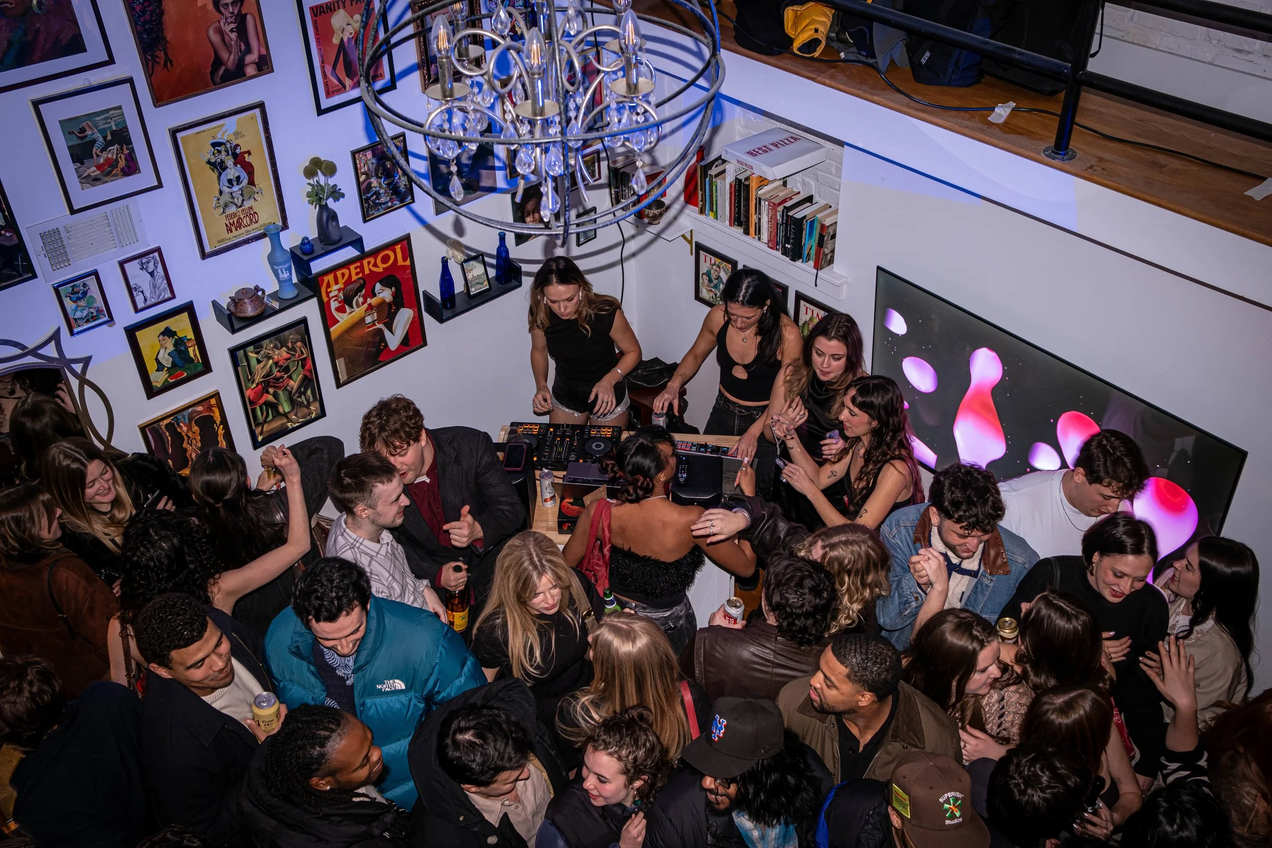 To ring in the New Year for 2026, my good friend Jojo Boyle and I put on a live performance with her DJing and my live visuals. I projected onto a gallery wall by mapping out the frames. I controlled the visuals live using a completely custom setup I created in TouchDesigner to send out different visuals to the frames and the wall behind it. I also mapped this setup onto a DJ board, allowing me to control it in real-time.